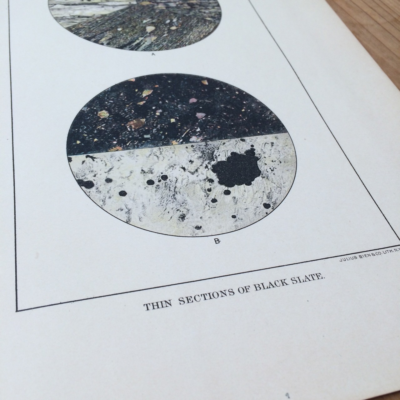 1890年代 アメリカ Antique print THIN SECTIONS OF BLACK SLATE 黒色粘板岩 図鑑ページ 海外