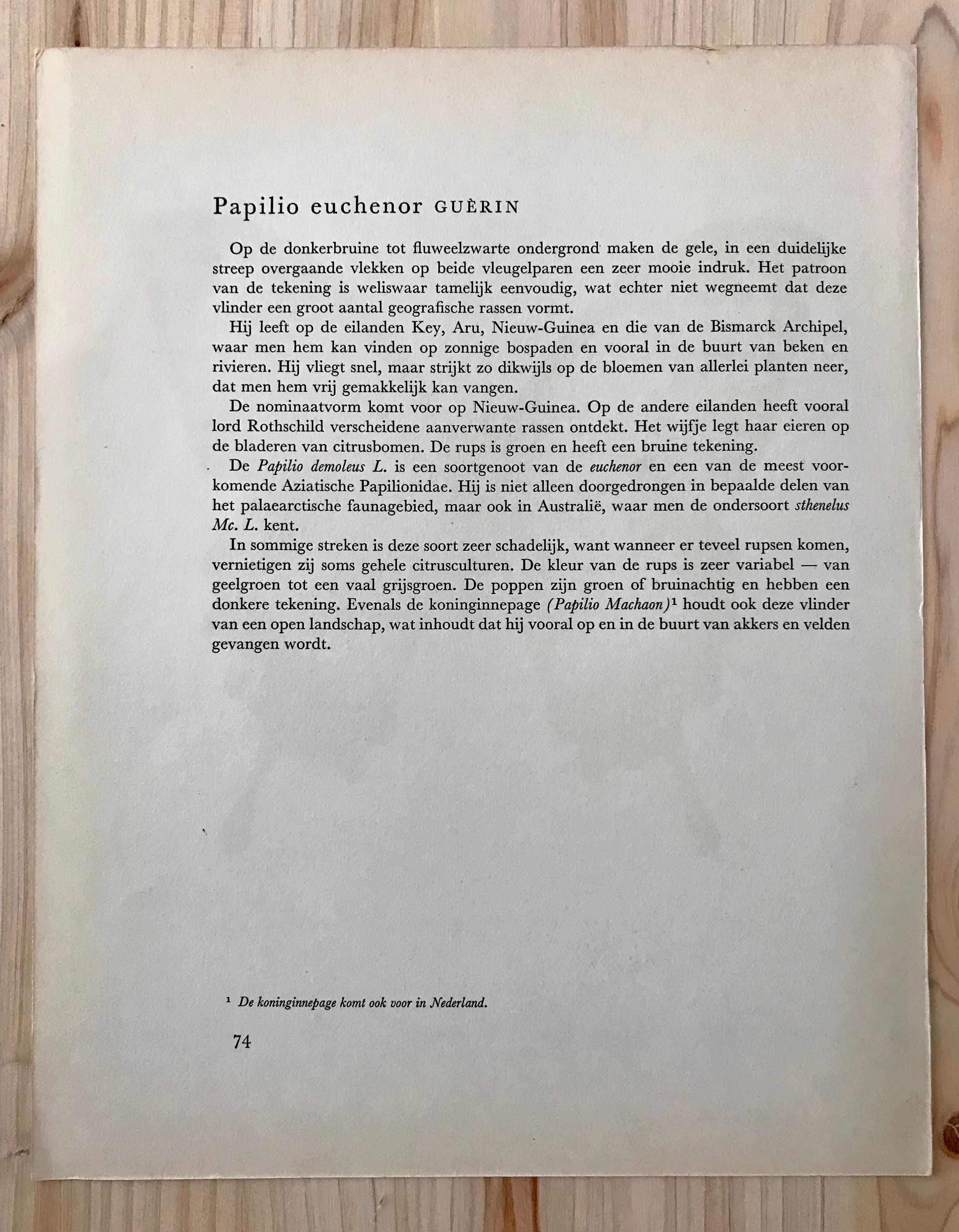 オランダより届きました、蝶々が描かれた図鑑ページです。