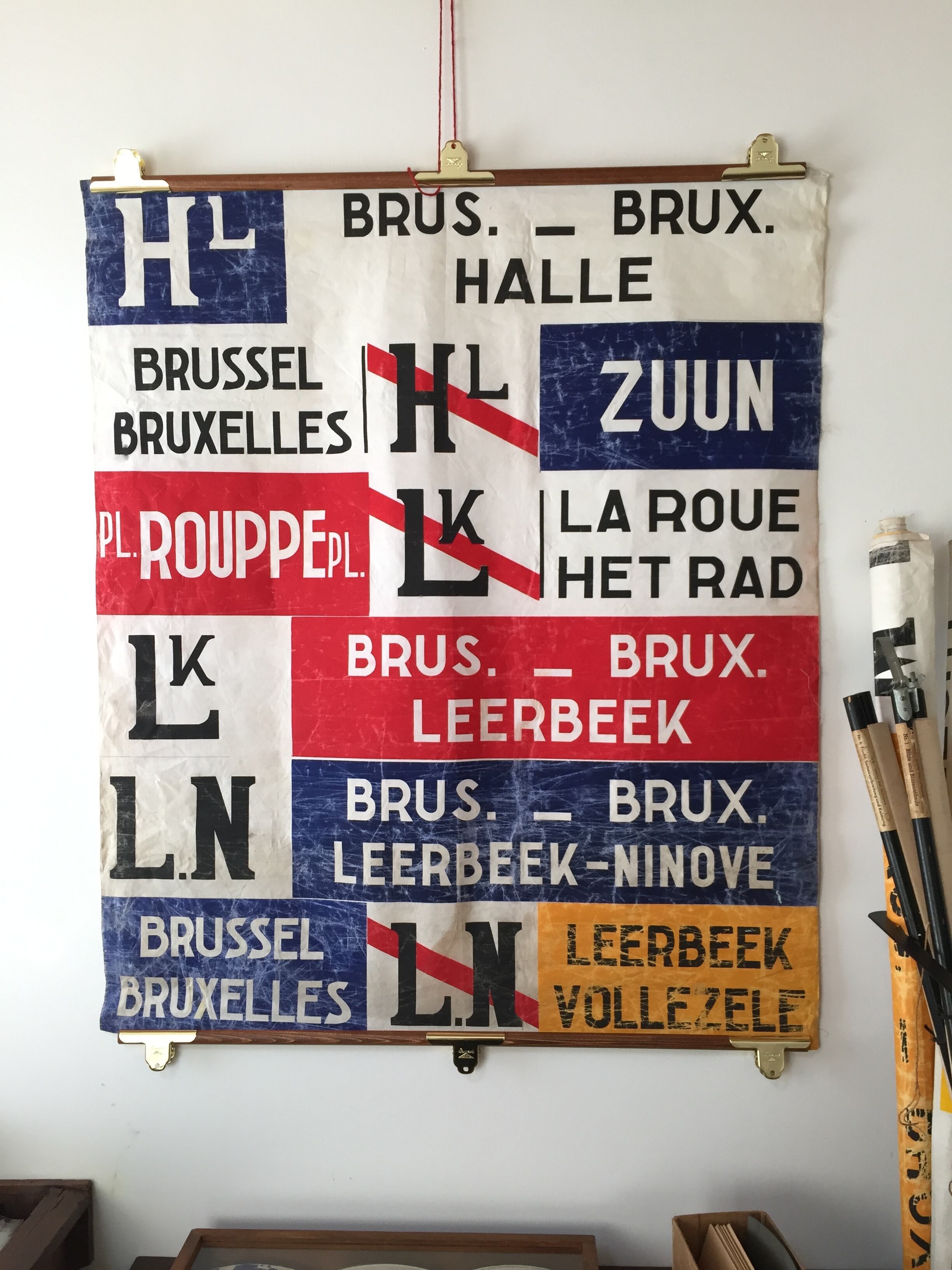 ベルギーのトラム(路面電車)に使われていた方向幕。布で出来ています。