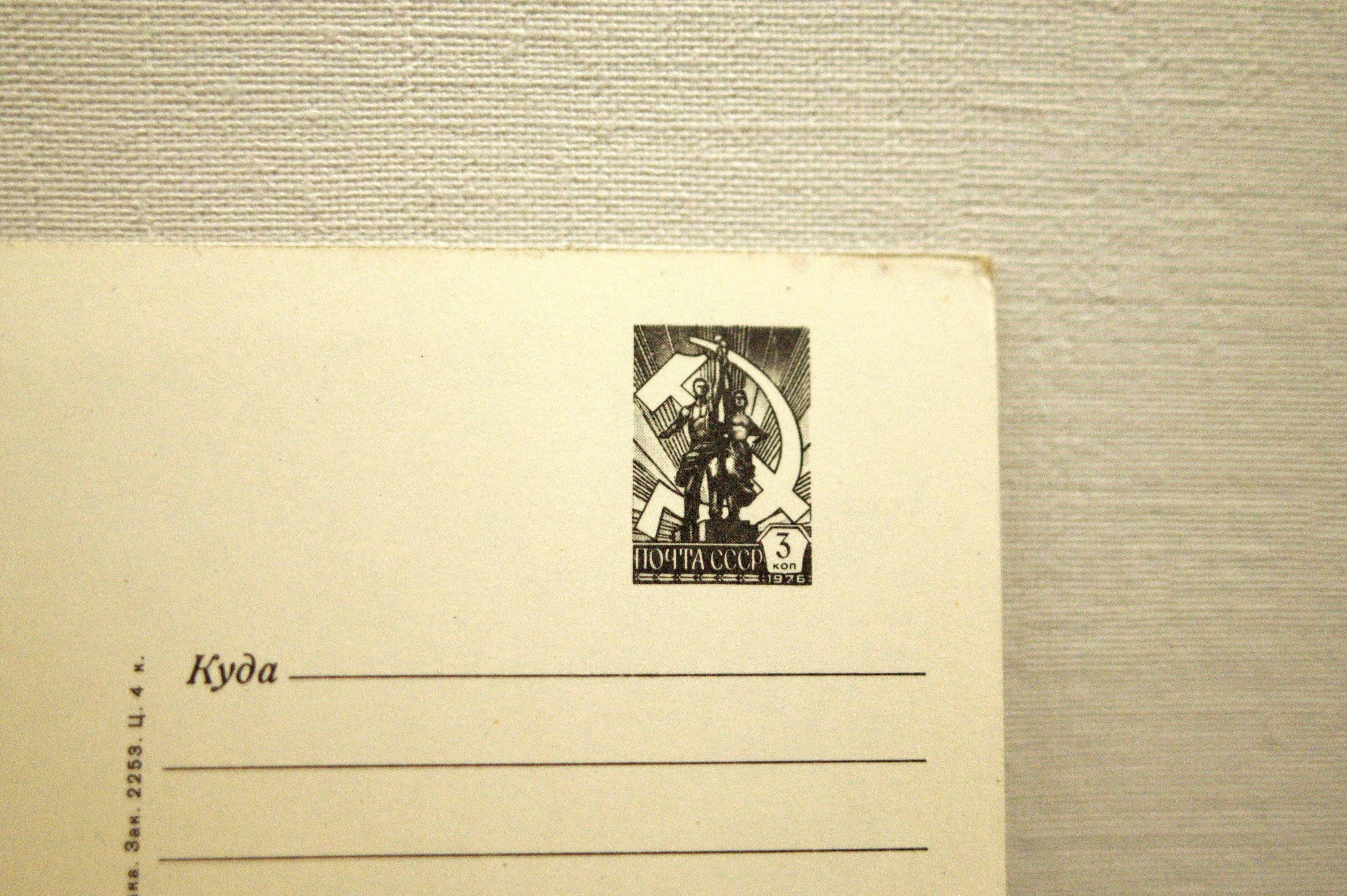 1980年ソビエトのサンタクロースと動物たちが描かれたグリーティングカードです。