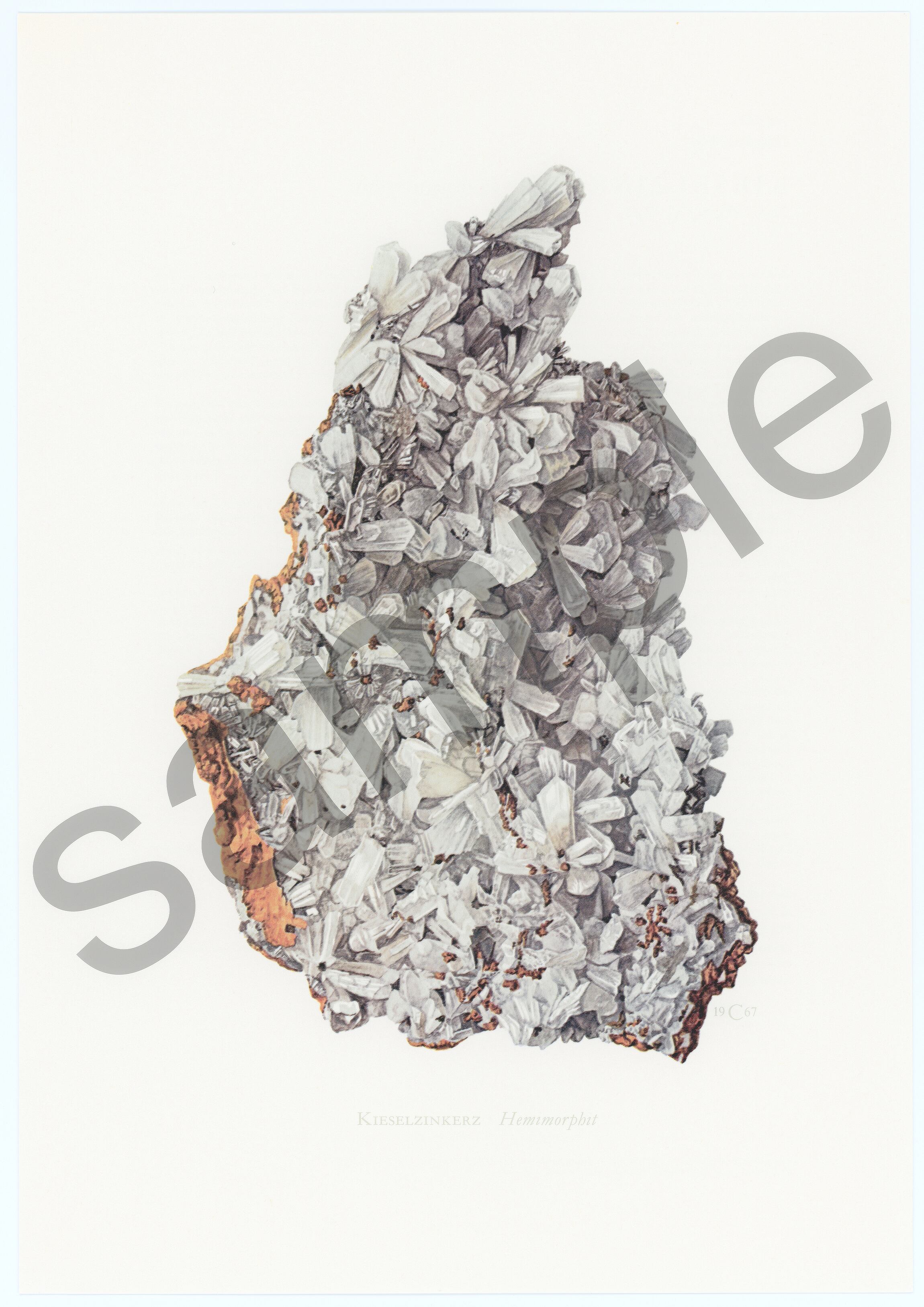 「1967年異極鉱のリトグラフ(鉱物画)」です。