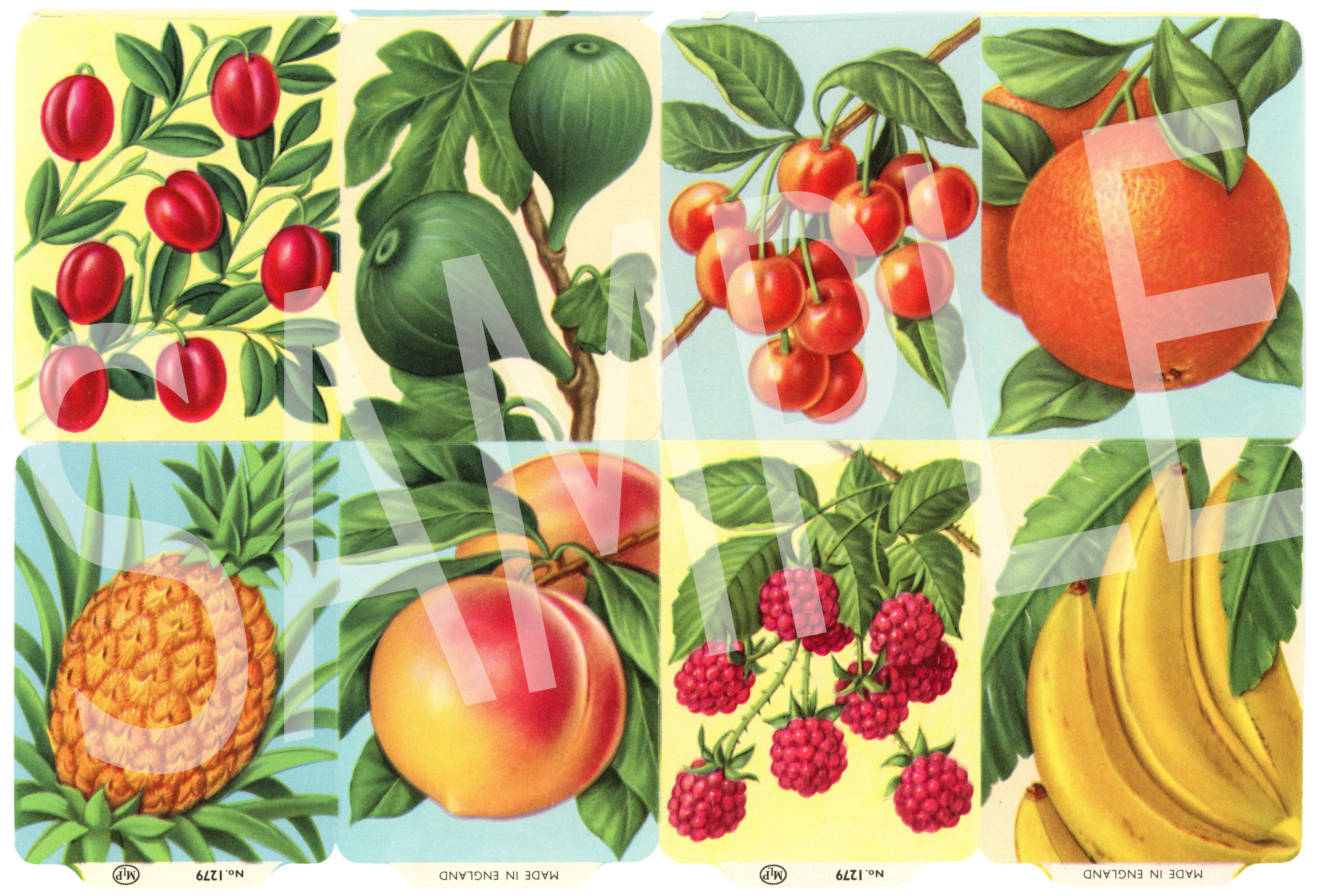 果物が描かれた知育カードです。MADE IN ENGLANDの文字が印字されています。